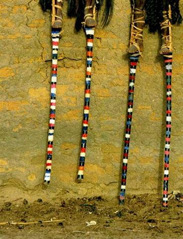 மிருகங்களிடம் ஏற்பட்ட போரினால் தடியில் ஆங்காங்கு இரத்தக் கரைகள் அப்பிக் கொண்டன. அவைகள் அத்தடியினை சிவப்பு நிறத்தில் பளபளக்கச் செய்தது. அவனின் உடம்பில் மிகச் சிறந்த வீரத்தழும்புகள் ஏற்பட்டிருப்பதாக உணருகிறான்.எவ்வளவோ மருத்துவர்களின் உதவியுடன் போர் களத்தில் ஏற்பட்ட புண்களை மருந்துகொண்டு குணப்படுத்த முடிந்தாலும், அதிக வலியும், ஆற அதிக நாட்களும் ஆகும். ஆனால் இங்கு புண்கள் ஆற தான் ஏதேதோ தளைகளைமட்டும் தடவிக் கொண்டாலும் உடனே குணமாகிவிடுகிறதே என வியந்தான்.